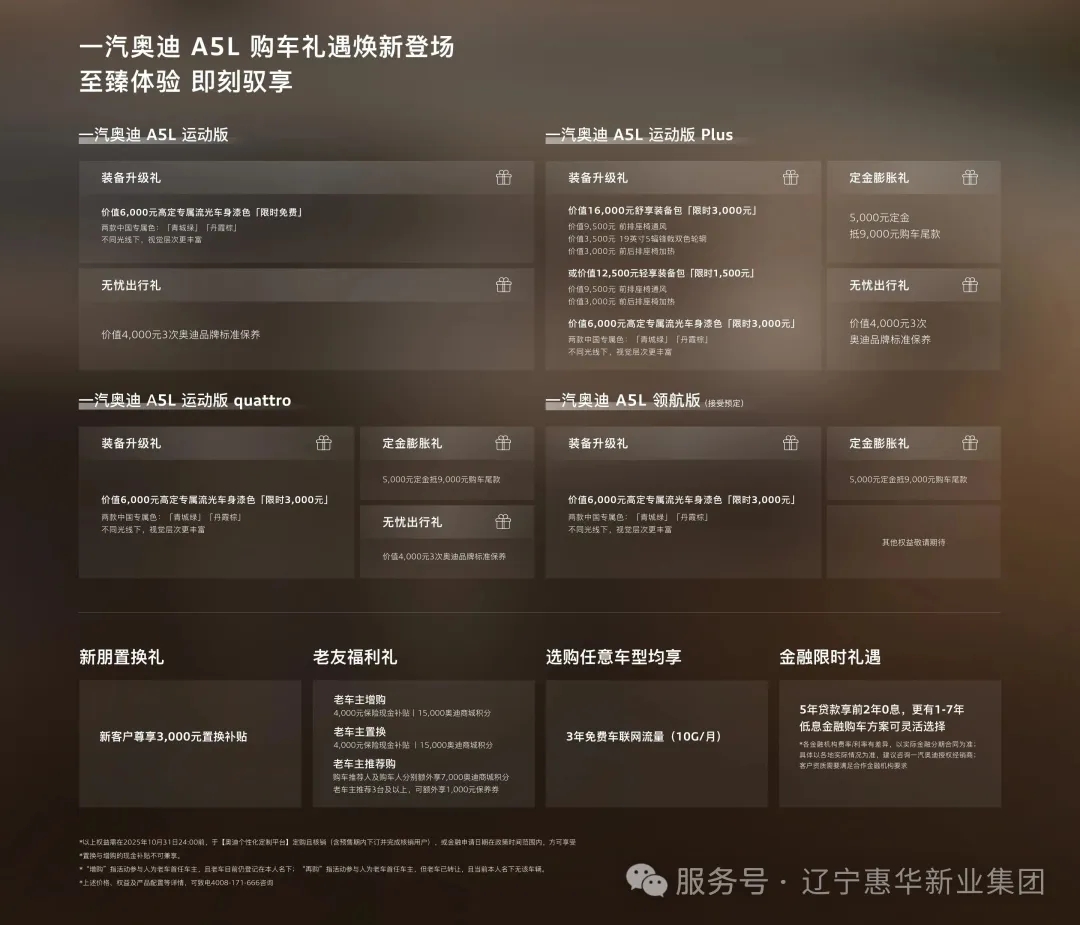 一汽奧迪A5L購車禮遇煥新登場